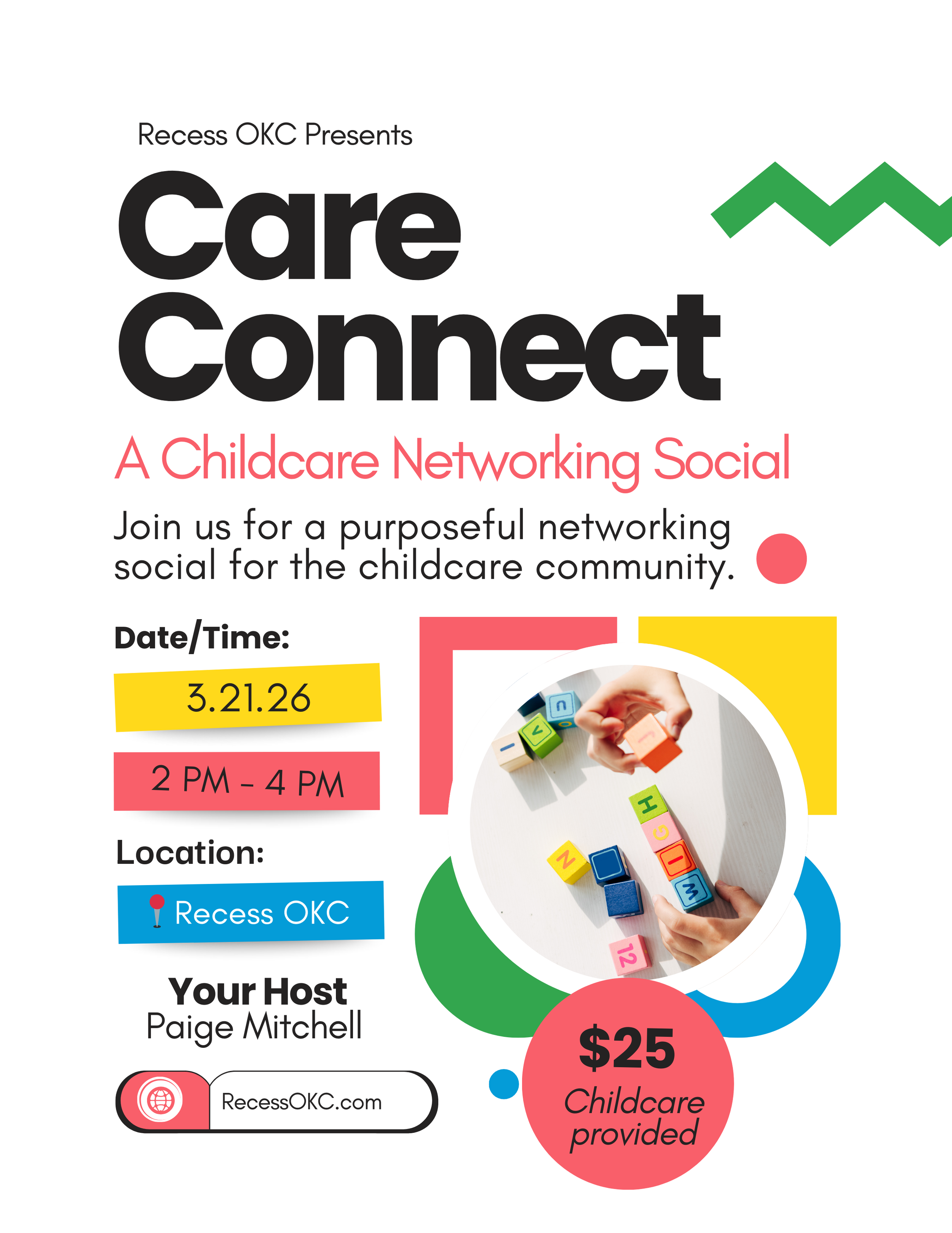 100% of proceeds benefit the Recess OKC Childcare Program